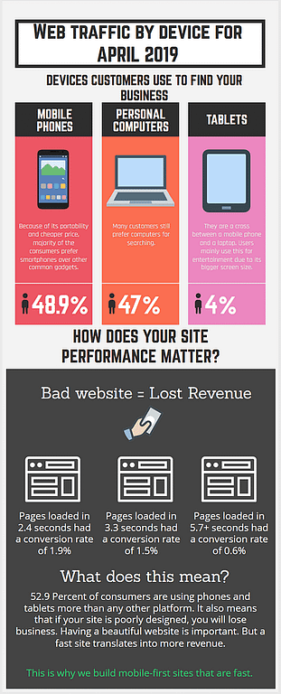 Every web developer says SEO, SEO, SEO. Search Engine Optimization or SEO is part of the puzzle but not all. If your page is slow Google will not want to feature your site. If your page is not mobile-friendly they don’t want to recommend your site when your competitor has one that is more user-friendly.